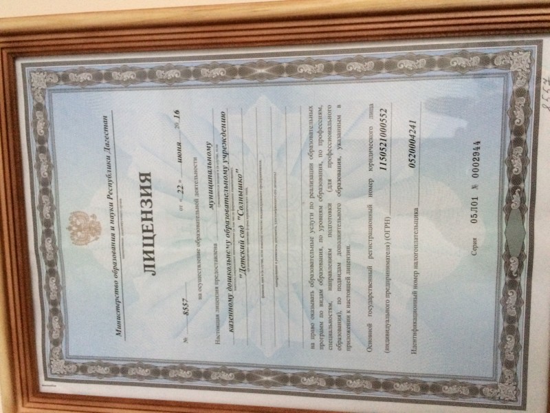 | Полное наименование образовательной организации* | Муниципальное казенное дошкольное образовательное учреждение " Детский сад "Солнышко" |
